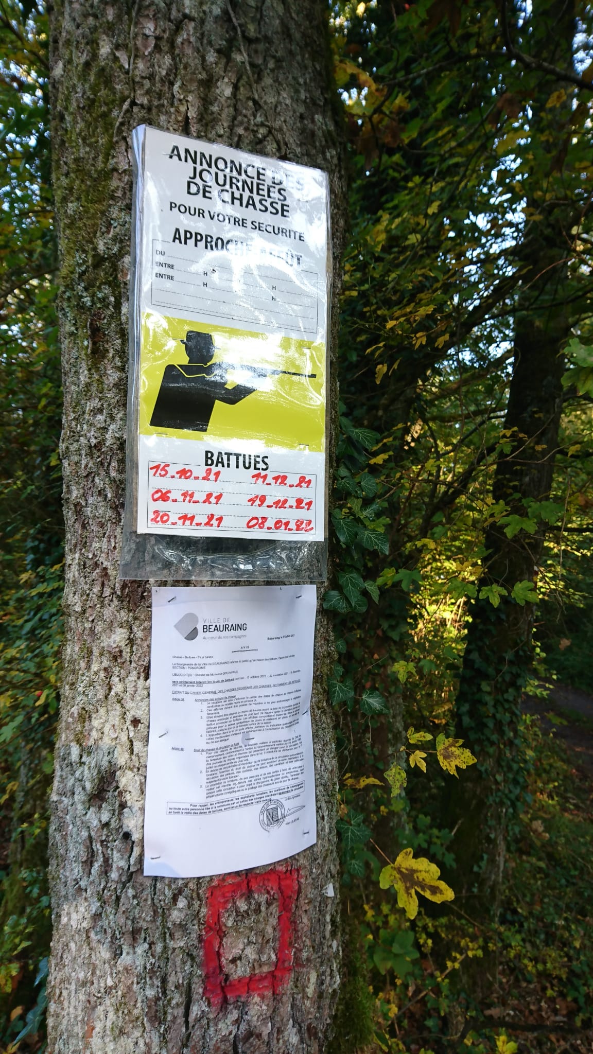 Het verbod om het bos te betreden geldt de dag van de jacht et de dag ervoor.