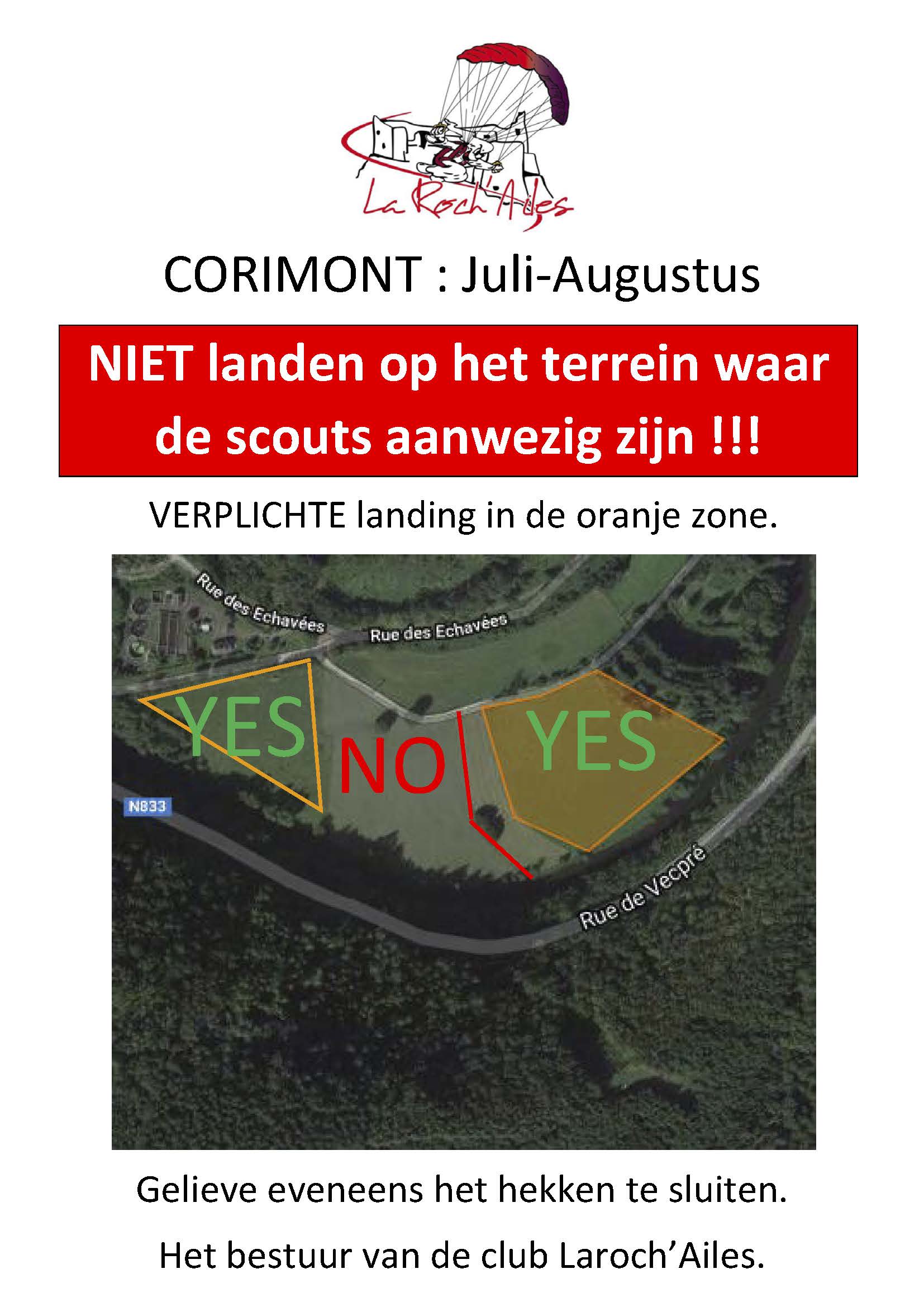 Verboden te landen op het officiële landingsterrein van La Roche Corimont als er een scoutskamp is in juli en augustus.