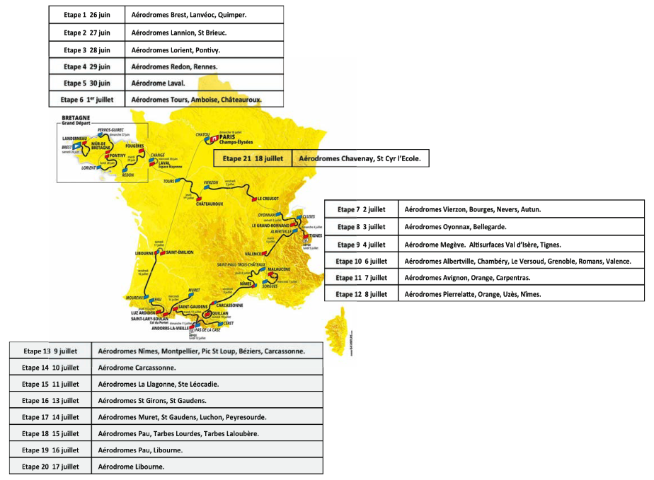 Vliegbeperkingen/verboden betreffende het overvliegen van de karavaan van de Ronde van Frankrijk wielrennen zijn zoals elk jaar van toepassing en dit van 26 juni tot 18 juli.
