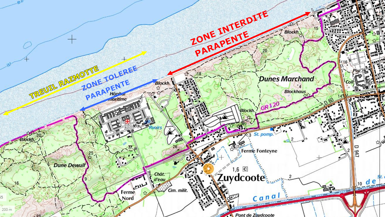 De gemeente Zuydcoote (die het strand beheert) en het “Conservatoire du Littoral” (beheerder van de duinen) herinneren eraan dat parapente verboden is tussen Zuydcoote en Bray-dunes :