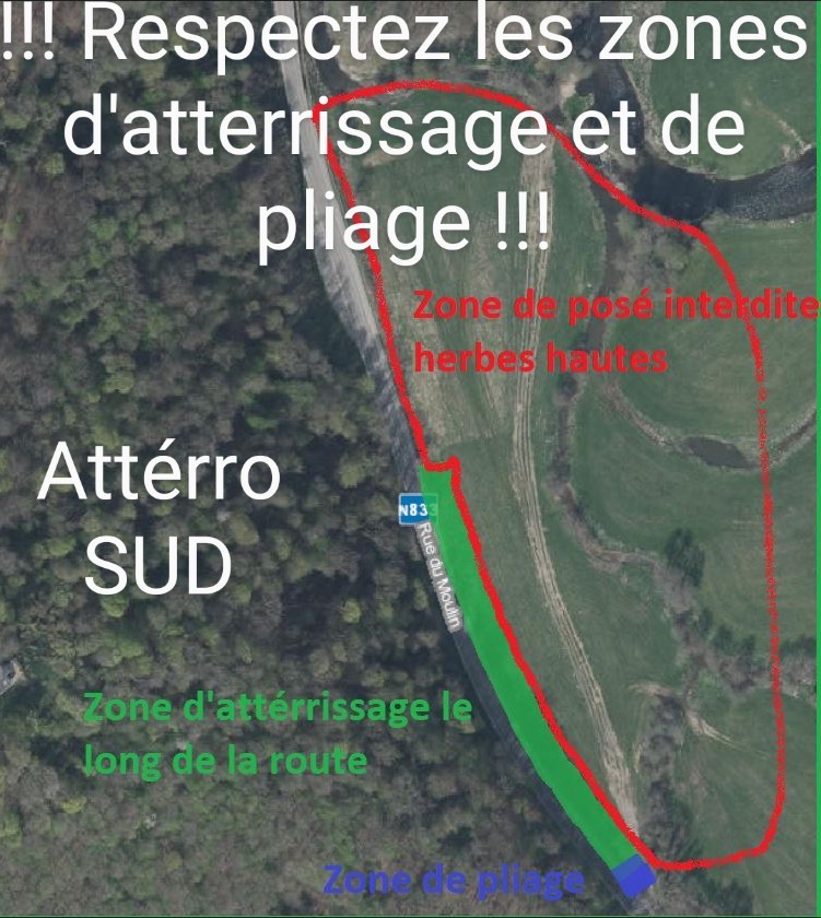 Tijdens het hooiseizoen is de landingszone van Marcourt-zuid beperkt tot de strook langs de rand van de weg onderaan de startplaats, de weg van Hotton naar La Roche (groene zone op foto in bijlage). De nieuwe windzak begrenst er de breedte van.